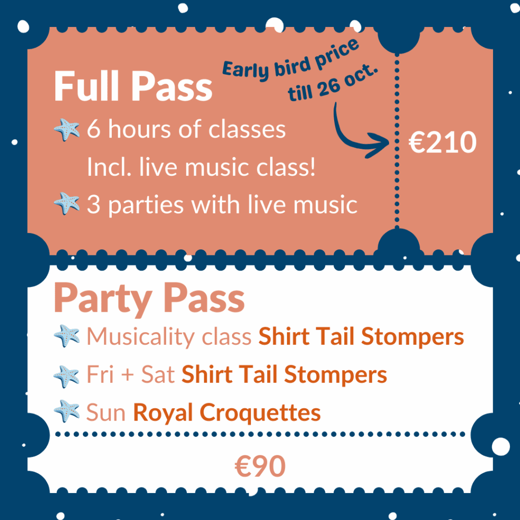 The Shirt Tail Stompers have been recognised as one of Europe’s best social dance bands. Formed in 2010 for the London Lindy Exchange, they have played numerous dance camps and shows in over 25 countries all over the world. They have a passion for swing music and movement, with their extensive knowledge and experience of social dancing, they are definitely the band to dance to in 2026.